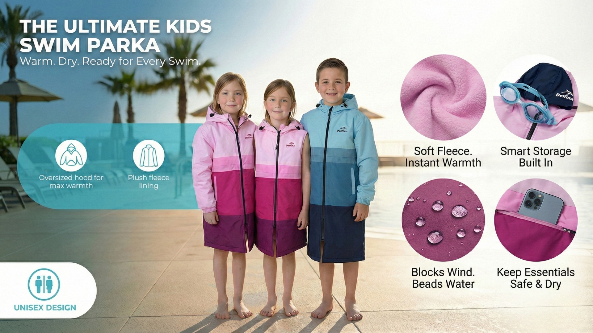 Delfina Kids Swim Parka Jacket with Removable Sleeves
